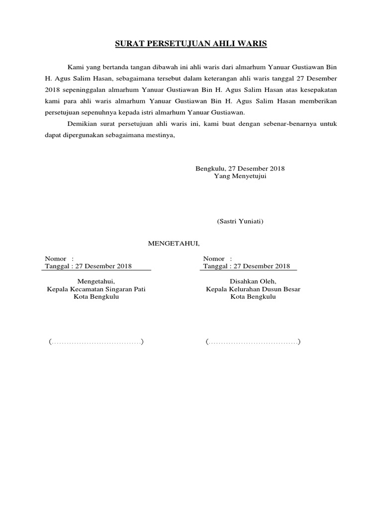 Surat Persetujuan Ahli Waris Pdf